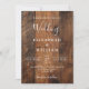 Cette invitation de mariage avec fond en bois de grange rustique peut être personnalisée avec vos informations en typographie moderne et code QR de site web de mariage au verso. Conçu par Thisisnotme©