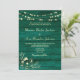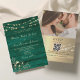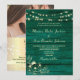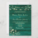 Célébrez votre grand jour avec une invitation élégante et moderne. Ce design en bois rustique vert émeraude comprend un code QR pour RSVP, site web, photo, dentelle florale bohème dorée et guirlandes lumineuses.