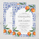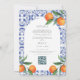 Invitation Code QR de mariage méditerranéen à carreaux bleus