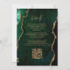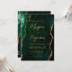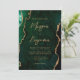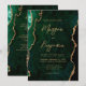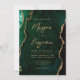 Cette élégante invitation de mariage présente une image de fond d'agate aquarelle verte émeraude rehaussée de paillettes dorées fausses. Le texte personnalisable combine une écriture manuscrite moderne de couleur or, des polices copperplate et italiques. Le verso offre un espace pour les détails du mariage sur un fond d'agate vert assorti, ainsi qu'un code QR que les invités peuvent scanner pour visiter votre site web et répondre, ce qui permet d'économiser le coût d'impression et d'envoi de cartes de réponse séparées.
