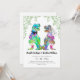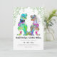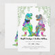 Étonnez vos invités avec ce carton d'invitation de mariage sur le thème des dinosaures, coloré et psychédélique, avec un marié et une mariée dinosaures amusants et un feuillage à l'aquarelle. Facile à personnaliser avec les noms des mariés, la date du mariage et tous les détails du lieu de la cérémonie dans une typographie moderne. Illustrations amusantes de mariés T-Rex dans des tons rose, violet, bleu, vert, jaune et orange avec une verdure d'eucalyptus. Œuvre d'art originale et unique de l'artiste Catherine Sweetman.