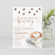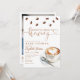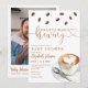Cette invitation de baby shower élégante présente des grains de café et une tasse de café et peut être personnalisée avec vos détails dans une typographie élégante. Le verso présente votre photo spéciale et un code QR de registre. Conçu par Thisisnotme©