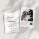 Invitation de mariage moderne et chic en noir et blanc avec une écriture calligraphique élégante et des initiales de monogramme personnalisées avec un code QR personnalisé, une photo personnalisée et plus d'informations détaillées sur le mariage au verso.