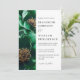 Cette élégante invitation de mariage florale vert émeraude et or peut être personnalisée avec vos informations en typographie moderne et une photo spéciale au verso avec les détails de votre site web de mariage. Conçu par Thisisnotme©