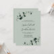 Faire-part de réception de mariage avec code QR, vert sauge et feuillage d'eucalyptus... Notre faire-part de réception de mariage botanique vert sauge présente des branches d'eucalyptus élégantes avec des feuilles vert sauge et émeraude créant une bordure d'aspect naturel pour le texte de l'invitation à l'intérieur. Le dos vert sauge de la carte contient l'URL de votre site web de mariage et un exemple de graphique de code QR que vous pouvez facilement remplacer par vos propres informations en même temps que vous révisez le texte. Tout le texte d'exemple peut être facilement révisé avec vos propres détails sur le modèle de personnalisation. Cette invitation de réception de style moderne a été conçue pour être à la fois élégante et rapide, créée spécialement pour les futures mariées occupées.