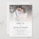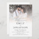 Code QR de superposition de photo moderne pour mariage avec un code QR vers votre site web de mariage au dos pour que vos invités puissent répondre et voir tous les détails en ligne sans avoir besoin d'insertions séparées. Votre code QR sera généré automatiquement pour mettre à jour l'exemple de code dans la conception, lorsque vous changerez simplement l'URL d'exemple dans le modèle avec l'URL de votre propre site web de mariage. Typographie moderne et simple que vous pouvez facilement personnaliser. Remplacez la photo d'exemple par votre préférée.