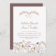 Joli fleur sauvage botanique et des herbes douces aquarelle faire-part de mariage avec code QR sur le blanc avec joli art monogramme d'herbe croisée dans le rose doux brun et une sélection d'art fleur sauvage doux muet sur le fond tout peint à la main en aquarelle. Délicat automne à hiver se sentir invitation d'art botanique avec texte script sur blanc et une palette de couleurs rose, marron, bleu, mauve, violet. Personnalisez avec vos propres initiales, noms, date du mariage, heure, lieu, plus de détails et code QR sur votre site Web mariage au verso. D'autres articles correspondants sont disponibles. Gris d'aquarelle à la main et peinture et design fleur sauvage par Sarah Trett pour www.mylittleedenweddings.com