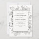 Invitation Code QR Elégant noir blanc floral ligne Art