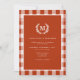 Red-Orange En vichy Monogram Crest QR Code Invitation pour les détails et RSVP. Apportez un charme éclatant à votre grand jour avec ce faire-part de mariage en vichy classique, qui fait partie de l'Elegant Rustic En vichy Collection. Doté d'un arrière - plan motif audacieux en vichy dans votre choix de six couleurs joyeuses, d'une crête monographique et d'une élégante typographie serif, ce design allie charme rustique et style intemporel. Parfait pour les mariages de campagne, de grange ou de jardin, cette invitation donne le ton d'une fête joyeuse et détendue. Associez-le à nos assiettes en vichy assorties, serviettes, étiquettes, panneaux d'accueil, et plus pour une suite mariage cohésive et colorée.