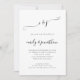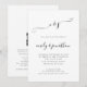 Faire-part de mariage Code QR Script Élégant Noir et Blanc ou de n'importe quelle couleur. Avec un code QR renvoyant à votre site web de mariage au verso pour que vos invités puissent répondre et voir tous les détails en ligne sans avoir besoin d'insertions séparées. Votre code QR sera généré automatiquement pour mettre à jour le code exemple dans le design, lorsque vous changerez simplement l'URL exemple dans le modèle avec l'URL de votre propre site web de mariage. Un design entièrement personnalisable avec vos initiales en haut dans un script élégant avec fioritures. Personnalisez facilement le texte, vous pouvez également cliquer sur "Modifier plus" pour changer les couleurs du texte et de l'arrière-plan si vous le souhaitez.