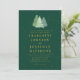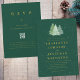 Faire-part de mariage hivernal avec code QR Invitation avec sapins à l'aquarelle et neige et typographie moderne élégante sur fond vert émeraude foncé