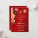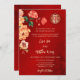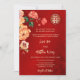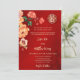 Cette version a un titre pour ajouter les NOMS DE VOTRE PARENT. Fleurs de pivoines rouges, oranges et jaunes avec un arrière - plan chatoyant rouge. Faire-part de mariage chinoise avec un double symbole de bonheur en or. Modifiez le code qr à l'arrière en ajoutant votre URL de votre site Web mariage.