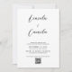 Un minimaliste budgétaire tout en un faire-part de mariage Caractéristiques un script de calligraphie élégant, une typographie simple avec un code QR pour rsvp en ligne, et le site de détails mariage.