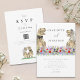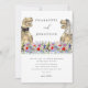 Apportez une touche ludique et vibrante à votre grand jour avec ces invitations de mariage colorées et inspirées de boho sur le thème des dinosaures ! Avec un délicieux couple de T-Rex mariés debout dans un magnifique pré de fleurs sauvages à l'aquarelle, ce design éclate de teintes vives de bleu, de violet, de rose, de rouge, de jaune et de vert. Le charmant couple de dinosaures est la combinaison parfaite de fun et de fantaisie, sur fond de fleurs de style boho qui ajoutent une ambiance terreuse et romantique à votre célébration.