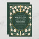 Invitation vos invités mariages avec cette invitation Monogramme d'Imaginaire médiéval Royal Sword & Shield avec des fleurs blanches crème et un arrière - plan vert. Ce design est parfait pour les couples à la recherche d'une esthétique d'imaginaire médiéval royale mais moderne. Personnalisez le texte, la police et les couleurs en fonction de vos préférences de conception. Objets correspondants dans notre boutique pour un thème de fête complet. REMARQUE : L'or présenté dans ce design n'est PAS un vrai papier peint.