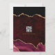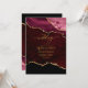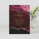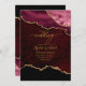 Ce luxueux faire-part de mariage bordeaux et doré présente un design riche d'inspiration agate, avec des accents dorés chatoyants et une typographie élégante. Au verso, vous trouverez un code QR qui vous permettra d'accéder facilement à d'autres détails mariages. Parfait pour des célébrations modernes et sophistiquées.