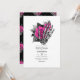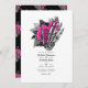 Whimsical vintage floral gothique squelette main faire-part de mariage dans les accents de rose chaud et noir personnalisable à votre événement spécifique. Idéal pour un thème ou un mariage de jardin. Le code QR au verso dirige vers votre site mariage où les gens peuvent en savoir plus et rsvp.