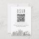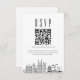 Une carte de code rsvp QR minimaliste de mariage avec une belle silhouette stylisée représentant la ville de Nashville. Remplacez le code QR par un lien vers votre site Web pour faciliter la réponse à votre événement mariage pour vos futurs invités.