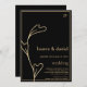 Faire-part de mariage minimaliste de code QR noir et or. Un design épuré intemporel avec élégance chic que vous pouvez personnaliser avec vos détails. Monogramme pour ajouter un bord moderne. Ajoutez un code QR à l'arrière pour que vos invités puissent analyser pour voir plus de détails. Modifiez le texte et les couleurs arrière - plans si vous souhaitez correspondre à votre propre thème mariage via le bouton Modifier plus loin.