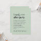 Invitation minimaliste moderne à la réception de mariage vert avec "Happily Ever After Party" dans un mélange d'écriture contemporaine et d'audacieuse typographie tendance. Personnalisez votre faire-part de mariage et votre invitation à la réception et ajoutez vos noms dans un script signature. Au contraire, entrez l'adresse URL de votre site Web mariage pour créer un code QR pour que vos invités puissent scanner en ligne vers RSVP et obtenir tous les détails.