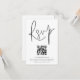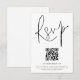 Code QR moderne Script Mariage noir et blanc ou n'importe quelle couleur RSVP. Un boîtier d'option pratique pour demander à vos invités de scanner votre code QR vers votre site Web mariage à RSVP. Une typographie stylisée en noir pour le titre principal RSVP complétant le reste du texte que vous pouvez facilement personnaliser. Votre code QR sera généré automatiquement pour mettre à jour l'exemple de code dans la conception, lorsque vous changez simplement l'exemple d'URL dans le modèle avec votre propre URL de site mariage.