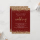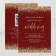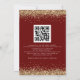 Code QR moderne pailleté or mariage bordeaux. Ajoutez votre code QR sur votre site web de mariage au verso, cela en fait une option pratique pour que vos invités puissent répondre et voir tous les détails sans avoir besoin de cartes de réponse et de détails séparées. Vous pouvez créer des codes QR gratuitement en ligne. Il suffit de rechercher « créateur de code QR » et de nombreuses options apparaissent pour créer gratuitement. Ou vous pouvez supprimer ceci si non requis. Un ensemble de texte manuscrit pour le mariage et le reste du texte que vous pouvez facilement personnaliser, avec une bordure de paillettes dorées sur les deux côtés.
