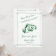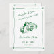 Cette invitation "Save the Date" verte fantaisiste dessinée à la main allie un aspect artistique ludique à la commodité moderne. Avec des éléments délicats dessinés à la main, une palette de couleurs vertes fraîches, votre photo personnelle et un code QR intégré pour un RSVP facile ou un accès au site web du mariage — c'est le mélange parfait de charme et de praticité.