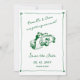 Cette invitation "Save the Date" verte fantaisiste dessinée à la main combine un aspect artistique ludique avec une commodité moderne. Avec des éléments délicats dessinés à la main, une palette de couleurs vertes fraîches, votre photo personnelle et un code QR intégré pour un RSVP facile ou un accès au site web du mariage — c'est le mélange parfait de charme et de praticité.