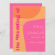 Formes Abstraites rétro style vintage style unique budget QR code en ligne RSVP faire-part de mariage avec "le mariage de" typographie audacieuse dans un moderne dynamique magenta rose chaud et orange chic palette de couleurs. +++++++ Veuillez noter que toutes les couleurs sont modifiables. +++++++++++++++++ L'invitation est adaptée aux mariages contemporains décontractés et design.