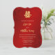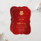 Cet élégant faire-part de mariage chinois est orné d'un double symbole de bonheur artistique en or sur un arrière - plan floral rouge rubis chatoyant. Noms de mariée et de mariée dans un élégant script manuscrit. Invitation à la cérémonie chinoise de faire-part de mariage ou de thé. Avec un code qr scannable à l'arrière.