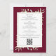 Avec des feuilles de verdure délicates peintes à l'aquarelle sur fond bordeaux, cette invitation de mariage botanique chic tout-en-un peut être personnalisée avec toutes vos informations spéciales de jour de mariage au verso, y compris votre RSVP, hébergement et code QR du site web de mariage. Conçu par Thisisnotme©