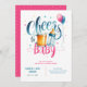 Bières et bouteilles rustiques et mignonnes, Cheers to Baby, Bébé brasse avec fleurs sauvages, verdure dans la sauge et couleurs pêche invitation baby shower, thème fille rose. Champs de texte des deux côtés.