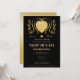 Elégante carte noire et or avec un grand coeur de diamant jaune et rubans de parties scintillant or. Le texte est divisé en petits segments pour le rendre facile à modifier.