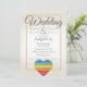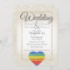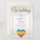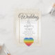 Cette belle faire-part de mariage élégante présente un cadre de parties scintillant en ivoire. La parties scintillant apparaît plus dense près des bords et s'estompe graduellement vers le centre. Un coeur de parties scintillant arc-en-ciel apparaît près du bas de l'invitation. Les couleurs représentent l'emblématique arc-en-ciel et drapeau gay pride ou LGBTQ. Un cadre en ivoire or borde la partie texte de l'invitation. L'arrière comprend un motif de parties scintillant en ivoire qui correspond à l'avant de l'invitation.