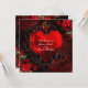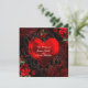 Invitation Cœur Floral Ornemental Noir et Rouge Romance Gothi