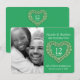 Invitation pour le 12ème anniversaire de mariage avec des perles vert jade autour d'une photo en forme de cœur. Bel effet de jade perlé dans une forme de cœur imprimée graphiquement, douzième invitation d'anniversaire de mariage personnalisable avec vos propres détails de fête et photo de mariage du couple heureux. Graphiques et conception originale de perles de jade vert par Sarah Trett pour www.mylittleeden.com et www.mylittleedenweddings.com