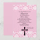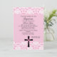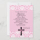 Commencez votre célébration par cette invitation élégante pourtant savoureuse pour cela baptême spécial de baptême de filles. Il a une damassé rose sur le dessus et le bas de l'invitation. Sur le fond au centre il y a une croix noire avec un coeur rose au centre de lui. Vérifiez les nombreux autres articles dans cette ligne telle que des étiquettes, affranchissement, remerciez vous des notes, et plus.
