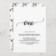 Cette carte d'invitation de premier anniversaire de calligraphie noire de coeur rose est parfaite pour une fête d'anniversaire rustique ou moderne d'un an. Le design minimaliste pour une petite fille est doté d'une belle typographie et d'un coeur rose pâle subtil. Le support est composé d'un motif classique à feuilles et branches.