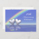 Invitation pour les 25 ans d'anniversaire de mariage avec un arc-en-ciel et deux cœurs argentés brillants flottant sur l'eau bleue. Personnalisez le texte au dos avec vos propres informations pour votre événement.