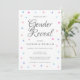 Avec de jolis coeurs d'amour roses et bleus éparpillés autour de vos détails personnalisés dans un texte élégant sur ce genre chic révéler l'invitation de la fête. Conçu par Thisisnotme©