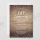 Avec des confettis de cœurs d'amour délicats sur un fond de panneaux boho en bois rustique. Personnalisez avec vos informations spéciales pour soixante ans d'anniversaire de diamant en lettrage chic et confettis de cœurs au verso. Conçu par Thisisnotme