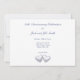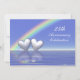 Invitation d'anniversaire de 25 ans avec un arc-en-ciel et deux cœurs argentés brillants flottant sur l'eau bleue. Personnalisez le texte de l'exemple au dos avec vos propres informations pour votre événement.