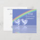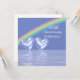 Invitation pour le 60e anniversaire de mariage avec diamants avec un arc-en-ciel dans un ciel bleu clair et deux cœurs de diamants brillants flottant sur l'eau. Personnalisez le texte exemple au dos avec vos propres informations pour votre événement.