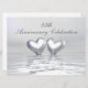 Une invitation de 25 ans de jubilé d'argent de couleur argentée avec deux cœurs en argent flottant sur l'eau. Personnalisez le texte d'exemple au dos avec vos propres informations pour votre événement.
