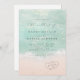 Beau turquoise abstraite aquarelle scintillante vague d'océan et les coeurs dans l'arrière - plan de plage de sable, surmonté d'un script élégant et d'élégante police serif, moderne et simple. Grand faire-part de mariage pour le mariage nautique de plage, mariage de destination tropicale, mariage sur le thème de l'océan côtier en été.
