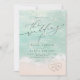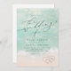 Beau turquoise abstraite aquarelle scintillante vague d'océan et les coeurs dans l'arrière - plan de plage de sable, surmonté d'un script élégant et d'élégante police serif, moderne et simple. Grand faire-part de mariage pour le mariage nautique de plage, mariage de destination tropicale, mariage sur le thème de l'océan côtier en été.