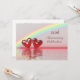Invitation pour le 40e anniversaire rubis avec un arc-en-ciel et deux cœurs rubis brillants flottant sur l'eau. Personnalisez le texte au dos avec vos propres informations pour votre événement.