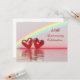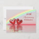 Invitation pour le 40e anniversaire rubis avec un arc-en-ciel et deux cœurs rubis brillants flottant sur l'eau. Personnalisez le texte de l'exemple au verso avec vos propres informations pour votre événement.