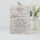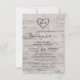 Cœurs sculptés en bois de bouleau rustique avec un design d'écorce d'arbre en bouleau gris vieilli et blanc cassé, et un aspect patiné et vieilli. Ce design en bois de récupération présente les initiales du couple sculptées dans la forme de cœur à l'intérieur de l'arbre. De plus, une typographie en détresse avec des polices chic campagnardes, ainsi qu'une police de caractères cursive élégante et vintage. Le design est parfait pour un mariage d'automne, d'hiver, de printemps ou d'été et peut être utilisé pour toutes les saisons - Invitation de réception de mariage personnalisée !