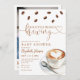 This stylish baby shower invitation features coffee beans and a cup of coffee and can be personalized with your details set in stylish typography. The reverse features your special photo and a registry QR code. Designed by Thisisnotme©